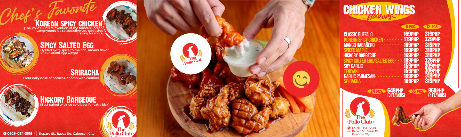 The Pollo Club is a local chicken wings restaurant designed to be trendy and vibrant. We used a bold red-and-yellow color palette that is bright, eye-catching, and memorable. The menu and packaging were crafted with the customer in mind, making them fun, visually appealing, and easy to navigate.