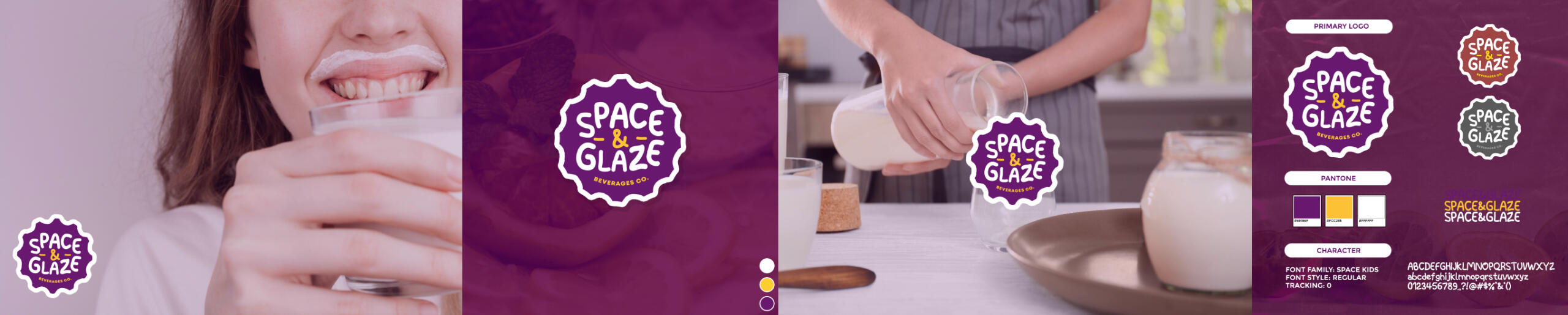 Space & Glaze is a milk bottle brand that started as a Shopify online store during the pandemic. I designed its branding to be cool and vibrant, using a pop-inspired violet, yellow, and white color palette.